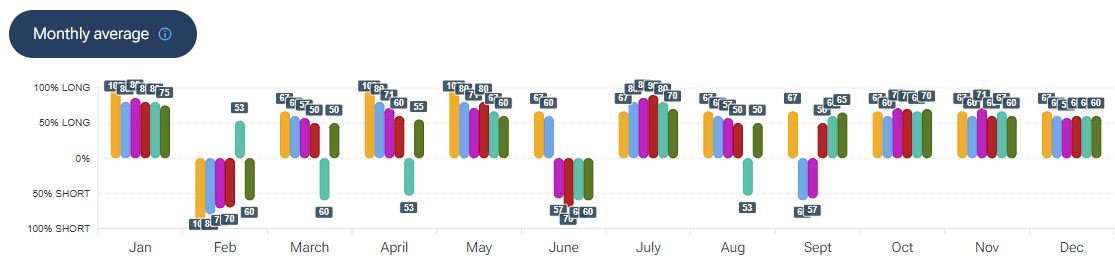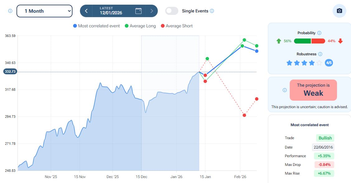 Per quanto riguarda la stagionalità - analizzata con la piattaforma Forecaster - gli archi temporali selezionati mostrano una potenziale fase positiva fino ai primi giorni di febbraio, seguita da una possibile fase correttiva che potrebbe estendersi fino a metà marzo.