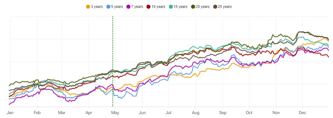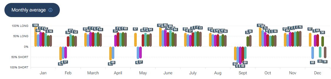 Per quanto riguarda la stagionalità - analizzata con la piattaforma Forecaster - gli archi temporali selezionati mostrano un potenziale fase di debolezza fino alla fine della prima decade di maggio, seguita da una possibile fase rialzista fino alla fine della prima decade di giugno.