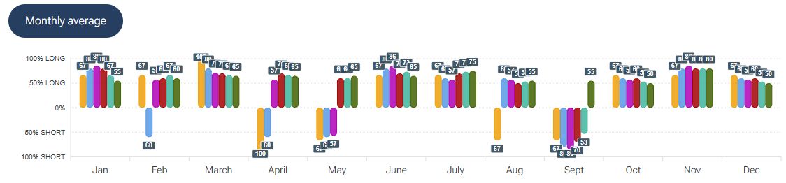 Per quanto riguarda la stagionalità - analizzata con la piattaforma Forecaster - gli archi temporali selezionati mostrano una potenziale fase ribassista fino a fine anno, seguita da una possibile fase rialzista che potrebbe estendersi fino a metà febbraio.