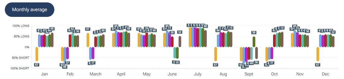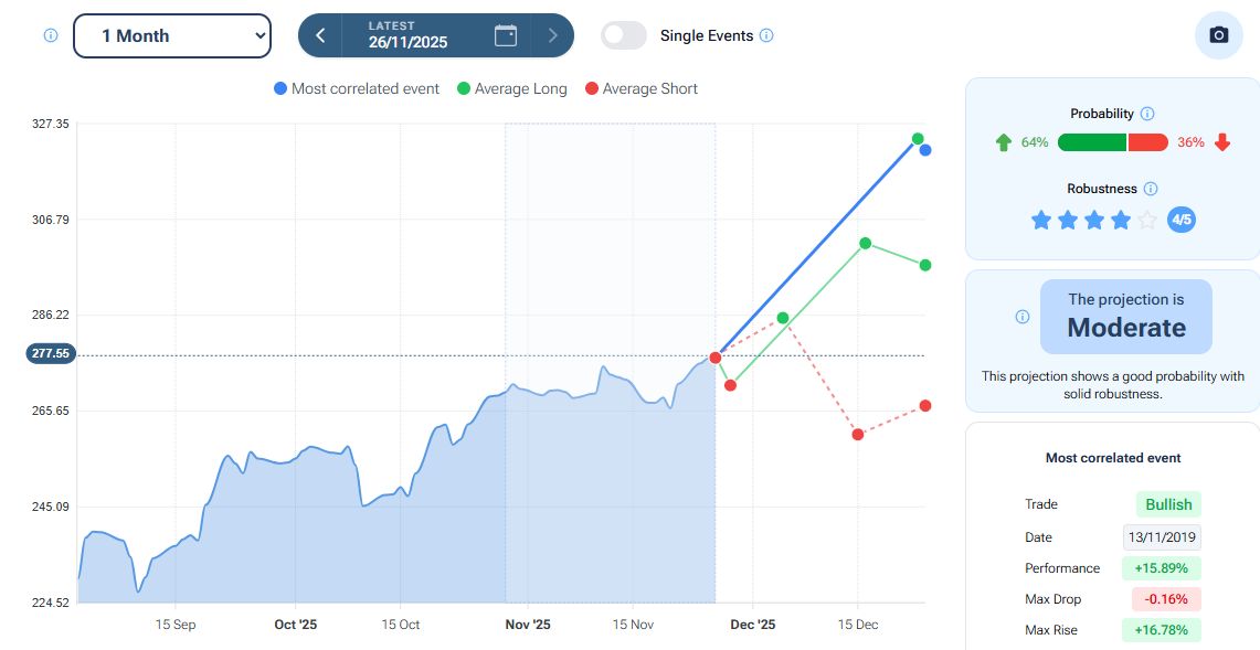 Per quanto riguarda la stagionalità - analizzata con la piattaforma Forecaster - gli archi temporali selezionati mostrano una possibile fase positiva fino alla fine della prima decade di dicembre, seguita da una possibile fase di lateralità che potrebbe durare fino a fine anno.