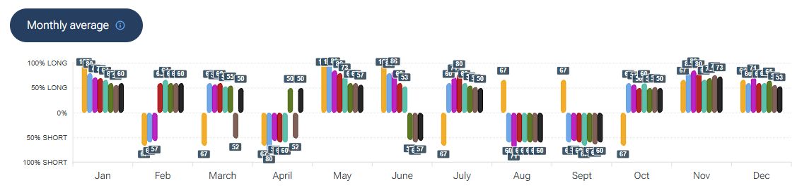 Tuttavia, per quanto riguarda la stagionalità - analizzata con la piattaforma Forecaster - gli archi temporali selezionati mostrano una possibile fase di debolezza che potrebbe estendersi fino a metà marzo, seguita da una potenziale fase rialzista che potrebbe durare fino alla fine della prima decade di giugno.