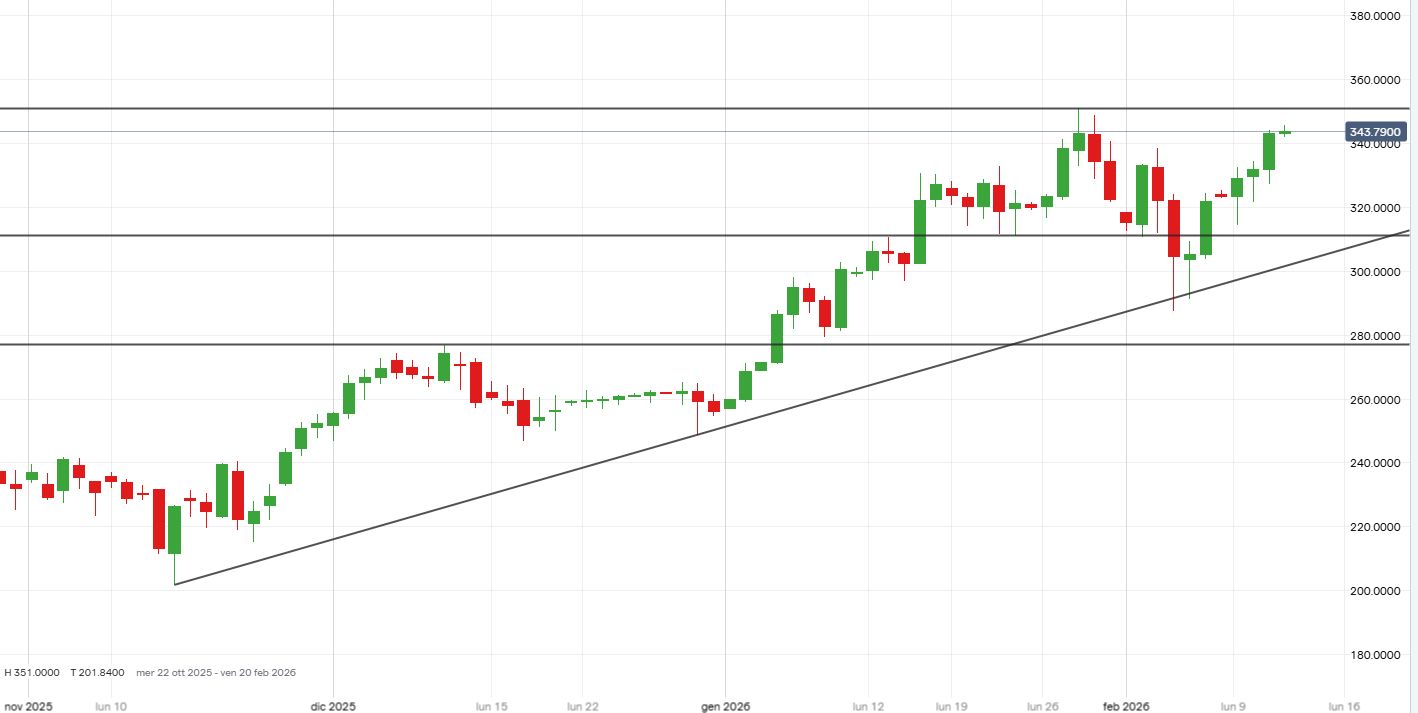 Le azioni Applied Materials rimangono all’interno della tendenza rialzista in atto dai minimi registrati ad aprile dello scorso anno in area 125 dollari. L’attuale struttura tecnica favorirebbe quindi l’implementazione di strategie long in linea con il trend dominante, idealmente dalla vicina area di supporto compresa tra i 311 e 300 dollari.