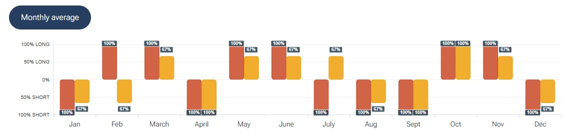 Per quanto riguarda la stagionalità - analizzata con la piattaforma Forecaster - gli archi temporali selezionati mostrano una possibile fase positiva fino alla fine della prima decade di dicembre, seguita da una potenziale fase di storno che potrebbe estendersi fino ai primi giorni di gennaio. È importante osservare, tuttavia, che le indicazioni stagionali si basano su uno storico molto limitato.