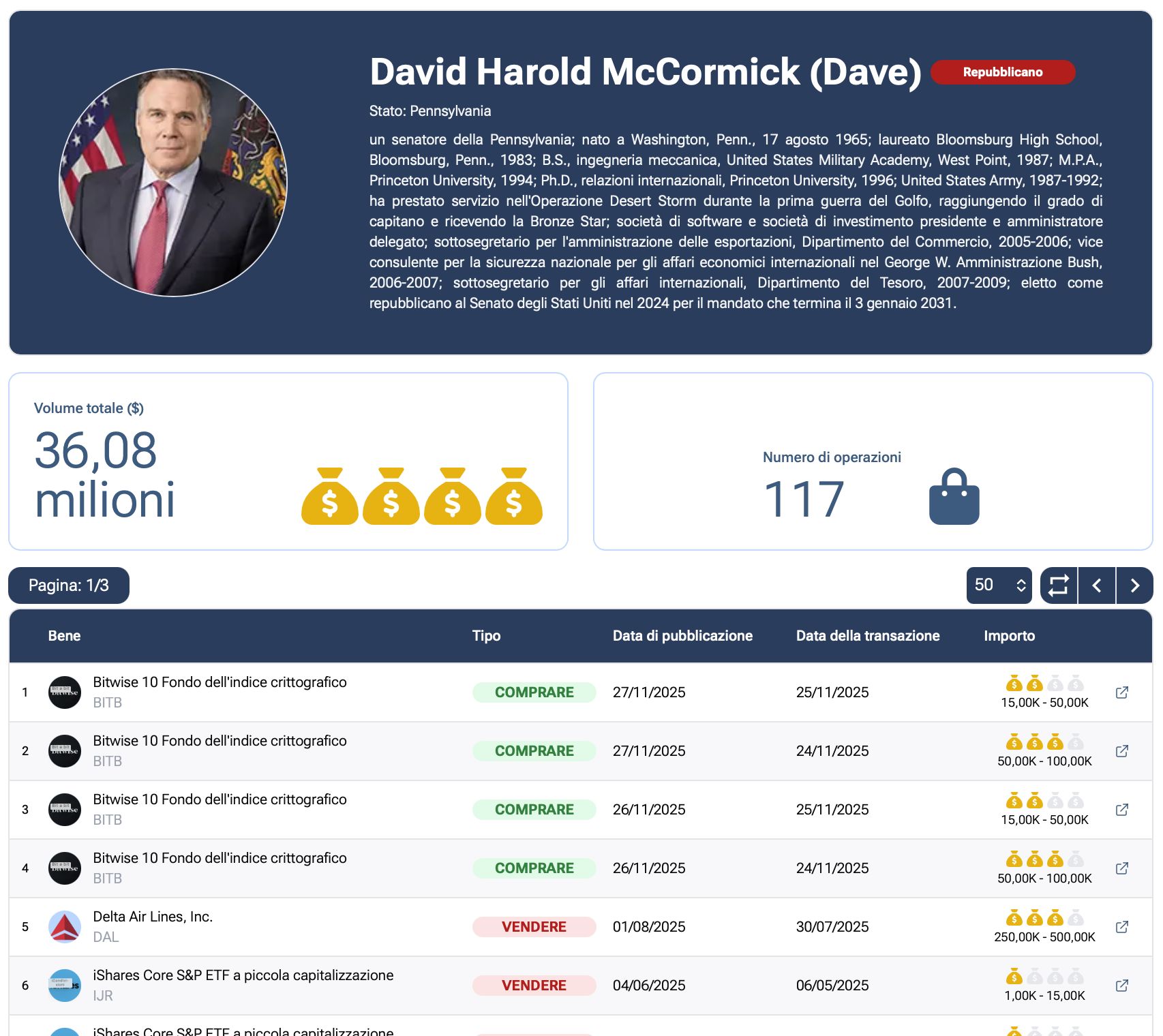 Non si tratta di un piccolo investitore che diversifica, ma di un politico che sta letteralmente riempiendo le sue posizioni con il Bitwise 10 Crypto Index Fund. Ma prima di capire la portata del suo investimento, è fondamentale comprendere chi è l'uomo dietro queste operazioni, perché il suo curriculum suggerisce che non si tratta di scommesse azzardate, ma di mosse calcolate.