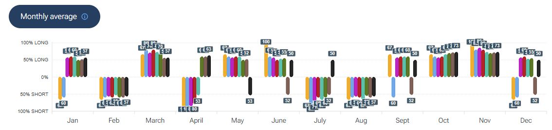 Per quanto riguarda la stagionalità - analizzata con la piattaforma Forecaster - gli archi temporali selezionati mostrano una potenziale fase di debolezza fino alla fine della prima decade di marzo, seguita da un rialzo che potrebbe estendersi fino a metà aprile.