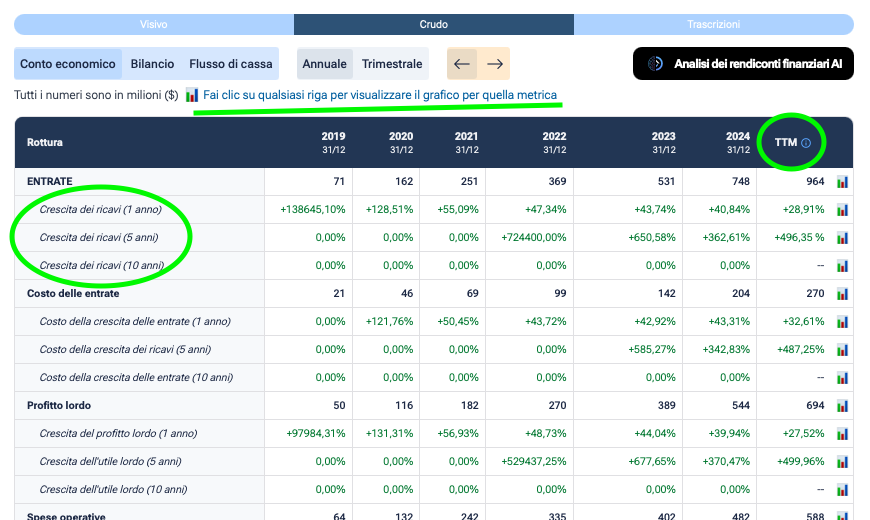 Il parametro chiave: TTM (Trailing 12 Months) Il TTM rappresenta la somma degli ultimi 4 trimestri. È il dato più vicino alla realtà attuale. Se il tasso di crescita del TTM è superiore alla media degli ultimi 5 anni, significa che l'azienda sta accelerando ora, nonostante quello che dice il telegiornale.