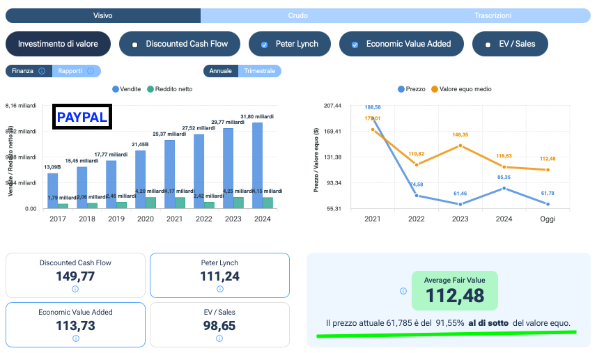 Valutazione: Eliminando metodi non adatti (come l'Enterprise Value su Sales o il DCF se troppo alto), i modelli di Fair Value (Peter Lynch, Economic Value Added) ci indicano che il titolo è estremamente sottovalutato.