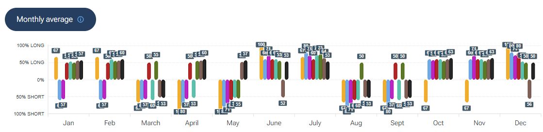 Per quanto riguarda la stagionalità - analizzata con la piattaforma Forecaster - gli archi temporali selezionati mostrano una possibile fase rialzista che potrebbe estendersi fino a fine aprile, seguita da un potenziale storno nella prima decade di maggio, prima di un eventuale nuovo allungo.