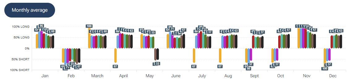 Per quanto riguarda la stagionalità - analizzata con la piattaforma Forecaster - gli archi temporali selezionati mostrano una possibile fase rialzista fino alla fine della prima decade di novembre, seguita un possibile storno nella seconda decade, prima di un eventuale ulteriore allungo.