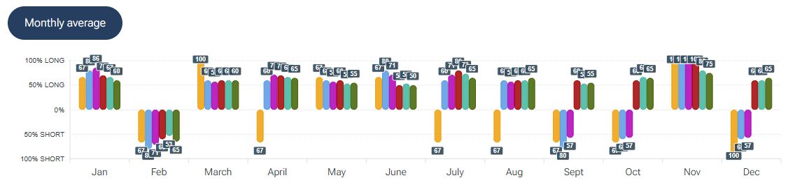 Per quanto riguarda la stagionalità - analizzata con la piattaforma Forecaster - gli archi temporali selezionati mostrano una possibile fase rialzista fino a fine gennaio, seguita da una possibile fase ribassista che potrebbe estendersi fino a metà marzo.