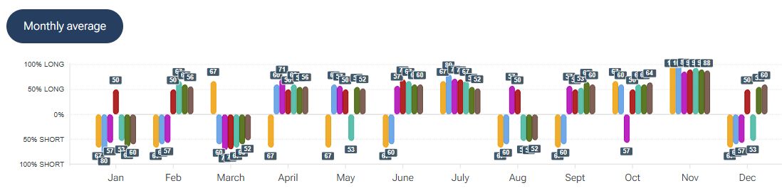 Nelle ultime sedute i prezzi hanno tentato un superando di area 64 dollari, virando però al ribasso nella giornata di ieri. Per quanto riguarda la stagionalità - analizzata con la piattaforma Forecaster – gli archi temporali selezionati mostrano una potenziale fase di rialzo fino alla fine della prima decade di giugno, seguita da una possibile fase di debolezza che potrebbe estendersi fino intorno al 20 giugno.