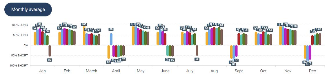 Per quanto riguarda la stagionalità - analizzata con la piattaforma Forecaster - gli archi temporali selezionati mostrano una possibile fase rialzista fino a fine anno, seguita da una possibile fase laterale/di debolezza che potrebbe estendersi fino alla fine di gennaio.