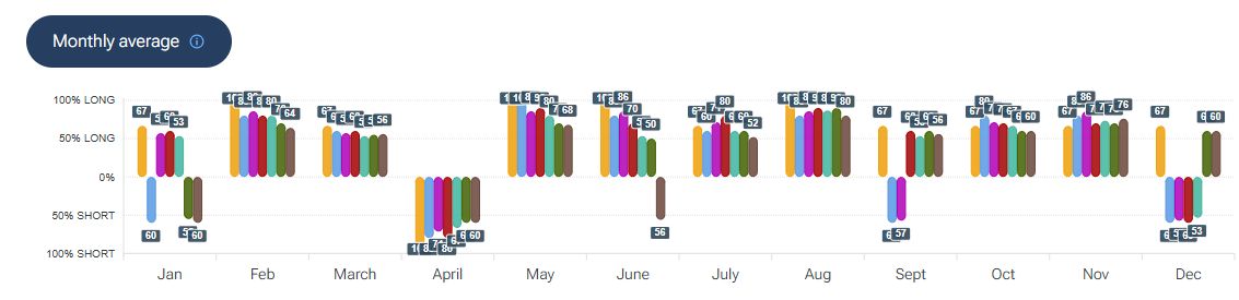 Per quanto riguarda la stagionalità - analizzata con la piattaforma Forecaster - gli archi temporali selezionati mostrano una possibile fase di debolezza che potrebbe estendersi fino alla fine della prima decade di marzo, seguita da una potenziale ripartenza al rialzo fino alla fine della prima decade di aprile, prima di un eventuale nuovo storno.