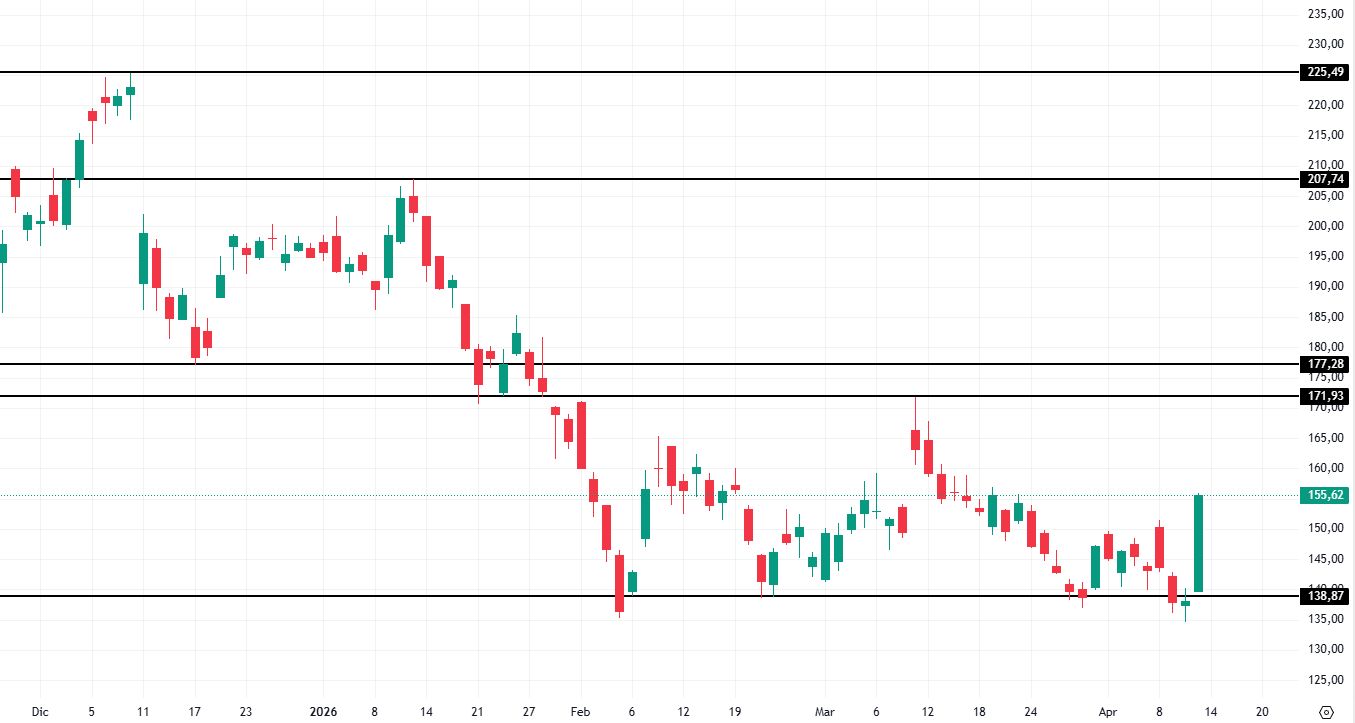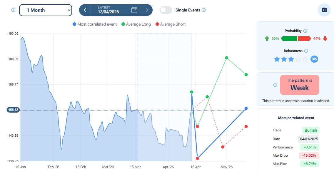 Nonostante il balzo registrato ieri, le azioni Oracle rimangono all’interno del trading range in atto da inizio febbraio, che vede come supporto area 138 dollari e come resistenza zona 172 dollari. Per quanto riguarda la stagionalità - analizzata con la piattaforma Forecaster - gli archi temporali selezionati mostrano una possibile fase di storno fino a metà della prossima settimana, seguita da una possibile fase rialzista che potrebbe estendersi fino a metà luglio.