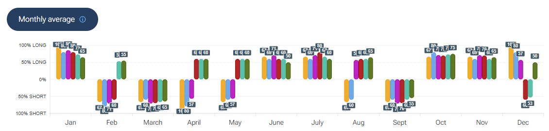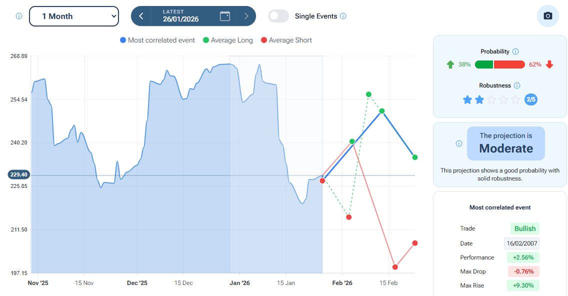 Per quanto riguarda la stagionalità - analizzata con la piattaforma Forecaster - gli archi temporali selezionati mostrano una potenziale fase positiva fino alla fine della prima settimana di febbraio, seguita da una possibile fase negativa che potrebbe estendersi fino a metà marzo.