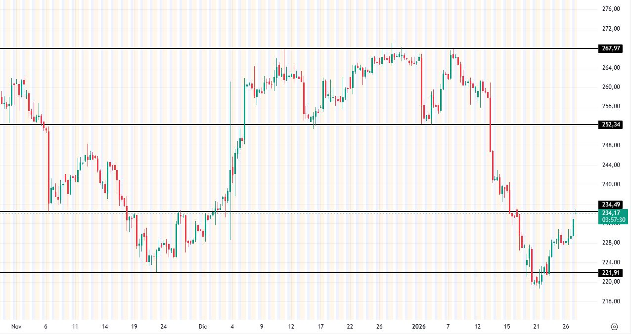 Nel breve termine, il quadro rimarrà favorevole ai compratori fino a quando verrà difeso il supporto a 221 dollari. Con l’abbandono di questo sostegno i prezzi potrebbero accelerare verso la successiva area di supporto a 212 dollari.