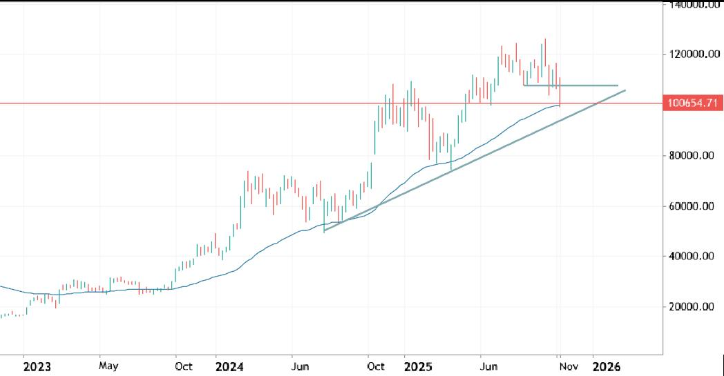 L’idea non mi pare così fantascientifica considerando che un doppio massimo è stato formalizzato con il break ribassista di 107k. L’obiettivo teorico della figura diventerebbe a questo punto 85/87k. La mia previsione è che per Bitcoin la fine del 2025 e l’inizio del 2026 sarà ancora all’insegna dell’incertezza.
