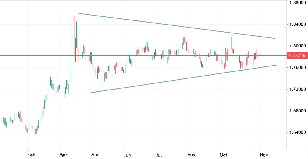 Per il cross EUR/AUD una figura di continuazione a massimi e minimi convergenti sta prendendo forma e si avvicina il momento della verità con la fuoriuscita sopra 1,80 che sancirebbe la formale ripresa del bull market. Solamente un deciso break ribassista sotto 1,75 manderebbe in archivio questa tesi aprendo prospettive bullish per la valuta di Sidney in ottica 2026. Lo scenario per il momento pare ambizioso soprattutto per quello che sta accadendo sull’altro rapporto di cambio, AUD/USD.