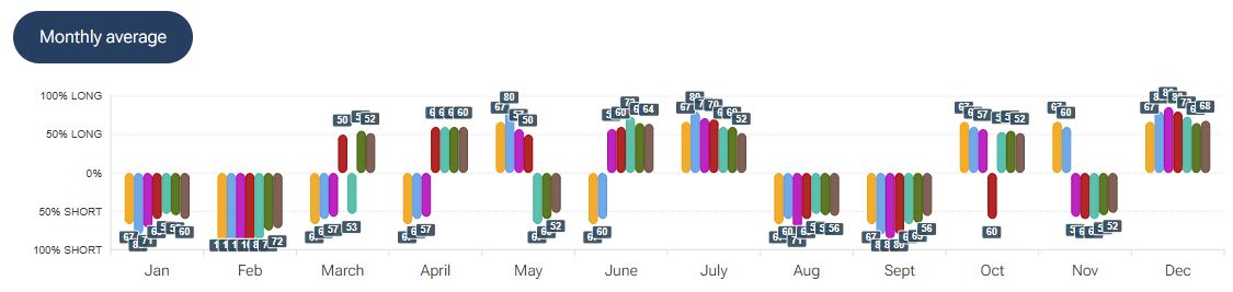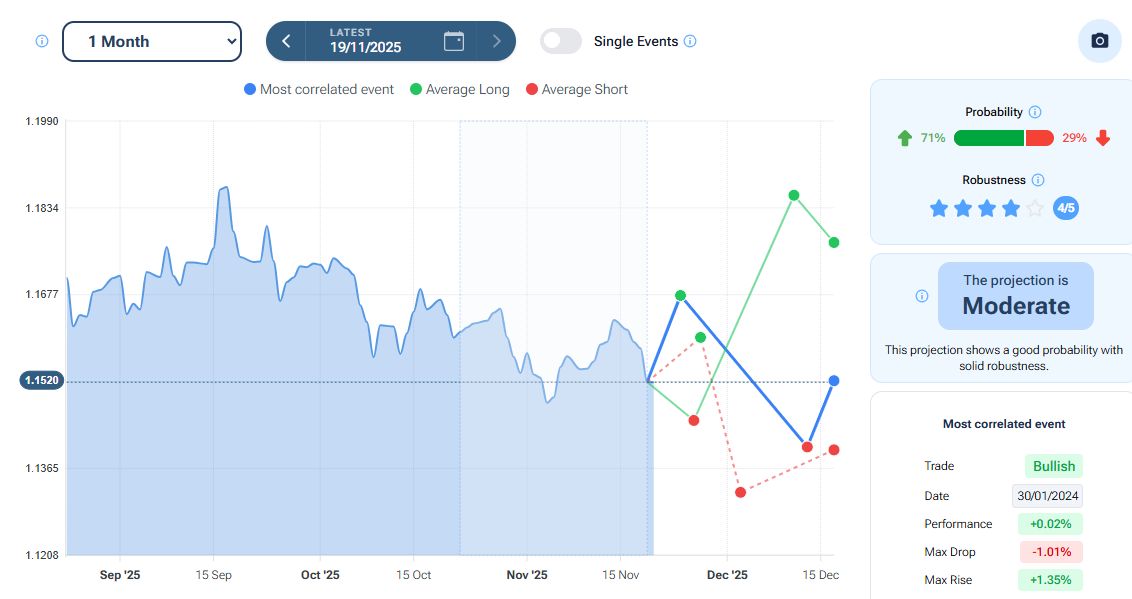 Per quanto riguarda la stagionalità - analizzata con la piattaforma Forecaster - gli archi temporali selezionati mostrano una possibile fase rialzista fino a fine anno, seguita da una possibile fase ribassista che potrebbe estendersi fino a inizio marzo.