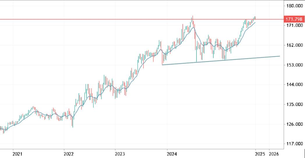 Lo yen rimane una delle valute più sottovalutate al mondo, ma l’analisi tecnica non sembra incoraggiare per una reazione immediata. USD/JPY sta minacciosamente riavvicinando quota 150. EUR/JPY area 175.