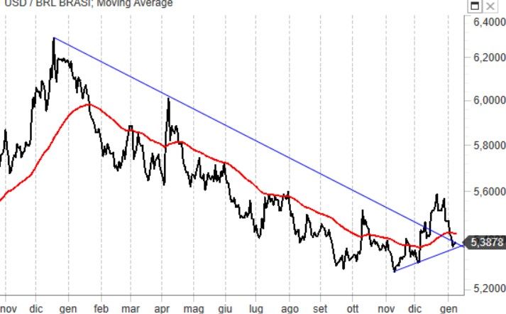 Superare 5,60 per USD/BRL rappresenterebbe infatti un segnale da non sottovalutare e che aprirebbe le porte ad una debolezza per il real che lo stesso governo dovrebbe tenere presente come messaggio offerto dai mercati finanziari.