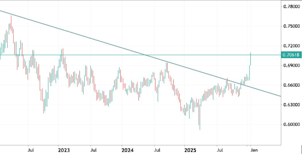 I recenti dati macro hanno fornito indicazioni positive per l’economia Pacifica, la disoccupazione in calo, l’inflazione che leggermente rialza la testa. Gli analisti non escludono che già a febbraio la Banca centrale (Riunioni Banca centrale australiana: le date dei meeting 2026) possa aumentare i tassi di interesse. Una mossa sorprendente considerando che fino a poche settimane fa si valutavano i tempi per un taglio nei tassi. E se gli Stati Uniti metteranno a capo della Fed una colomba, AUD/USD sembra essere un antipasto di quello che potrebbe accadere nei prossimi mesi.