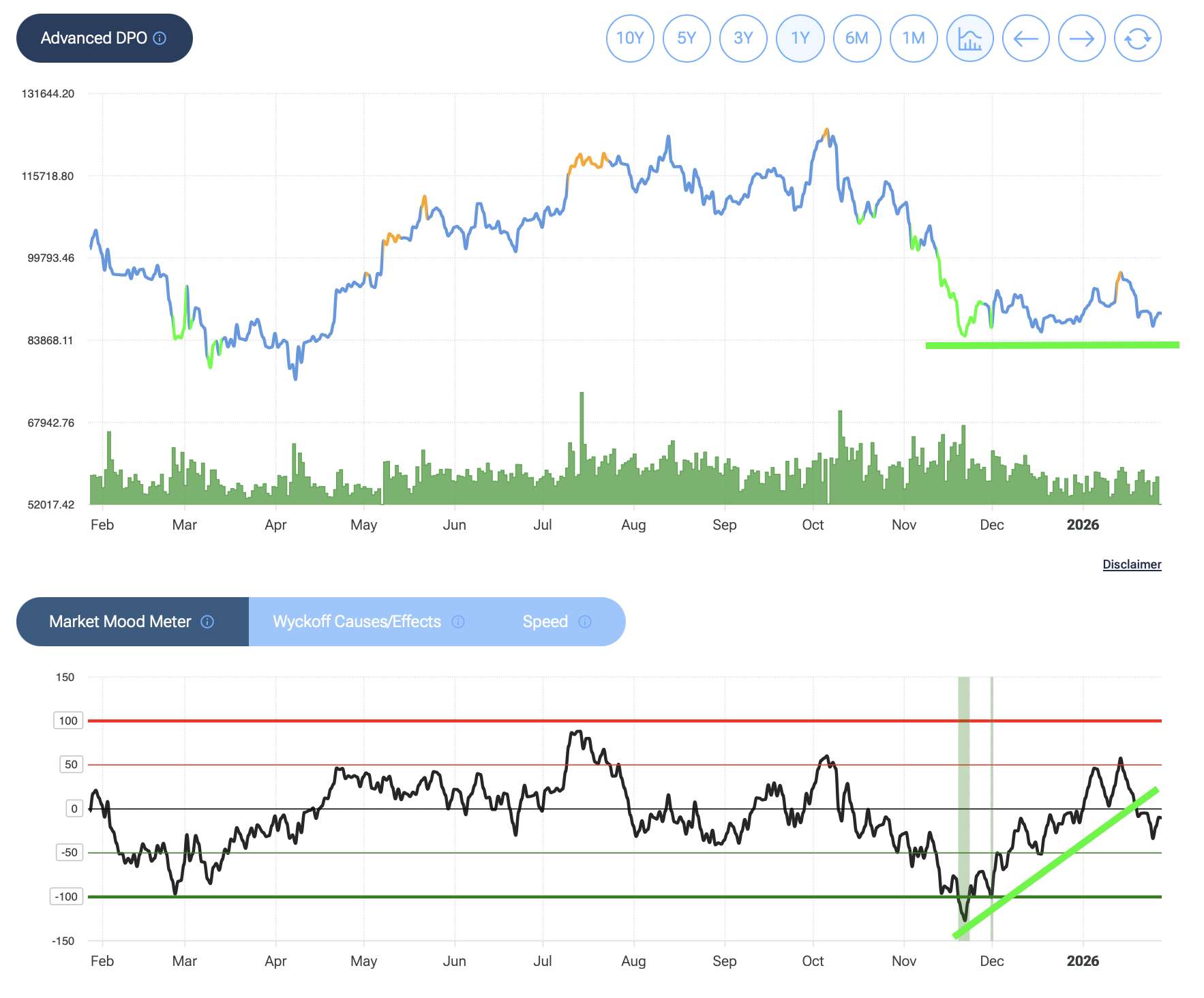 L'analisi sul Bitcoin (il driver di tutto il paniere) mostra che la criptovaluta ha fatto "cilecca" nel breve termine (l'accumulazione, che era anche accompagnata da una bella divergenze con il Market Mood Meter, non è esplosa subito), e la stagionalità suggerisce una possibile fase laterale simile al 2020. Tuttavia, la scadenza del certificato è tra due anni (2027). La scommessa è semplice: crediamo che nel 2027 il Bitcoin varrà più di oggi? Se la risposta è sì, questo strumento è un moltiplicatore di rendimento eccezionale, magari anche superiore all'investimento diretto in BTC.