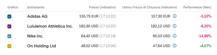 Il successo - o l'insuccesso - di questo strumento ruota infine attorno all'andamento e all'evoluzione del panorama competitivo dei quattro sottostanti.