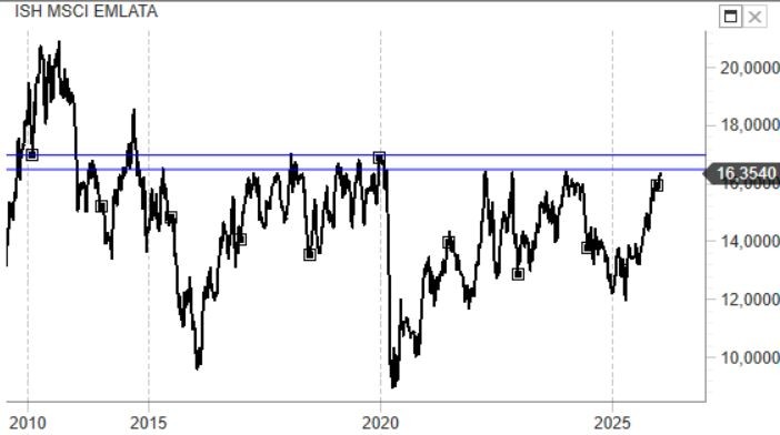 Indubbiamente può essere interessante andare a vedere quale è la situazione tecnica degli ETF che investono nelle Borse latino americane per capire se questa nuova situazione geopolitica potrebbe creare le premesse per un rally nel 2026.
