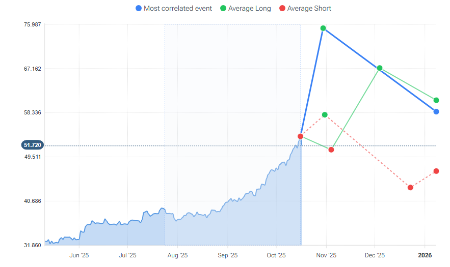 L'ipotesi “best match” stima un balzo in quota 75 dollari in corrispondenza della fine del mese di ottobre a cui dovrebbe far seguito una discesa nei mesi di novembre e dicembre che, a inizio 2026, dovrebbe portare le quotazioni in area 58 dollari.