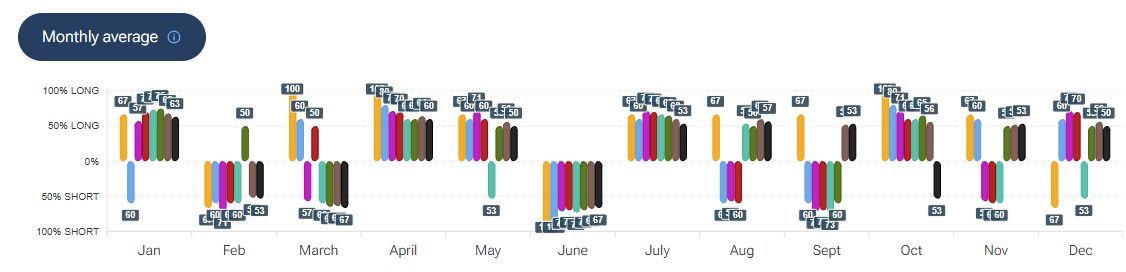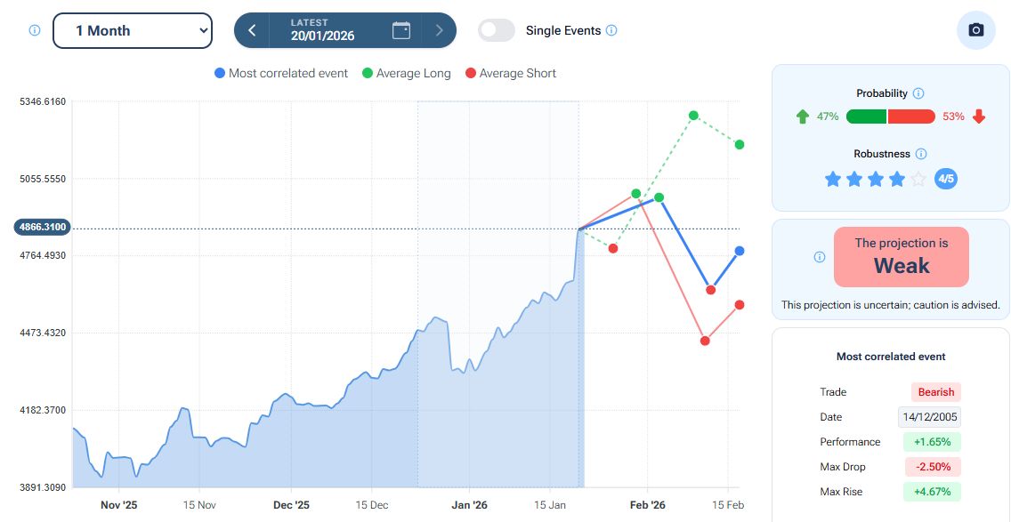 Per quanto riguarda la stagionalità - analizzata con la piattaforma Forecaster - gli archi temporali selezionati mostrano una potenziale fase rialzista fino a fine mese, seguita da una possibile fase correttiva di breve termine nel mese di febbraio.